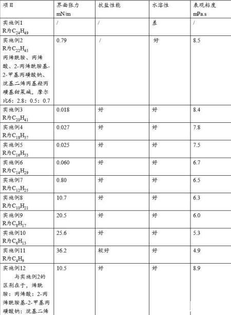 不同兩性聚合物界面張力、溶解性能及抗鹽性檢測結果