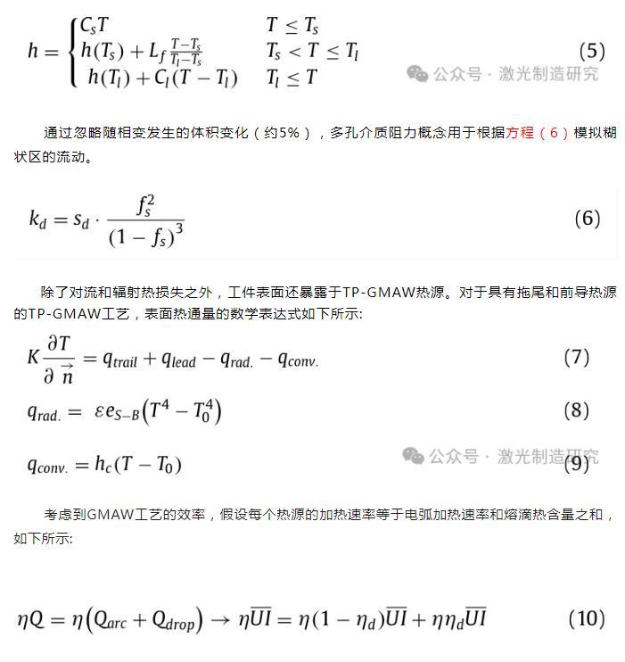 除了對流和輻射熱損失之外,工件表面還暴露于TP-GMAW熱源。對于具有拖尾和前導熱源的TP-GMAW工藝,表面熱通量的數(shù)學表達式如下所示: