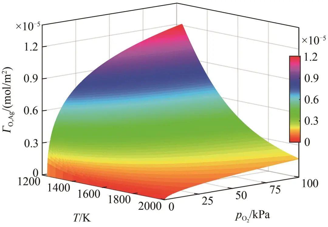 圖7表面過剩量隨溫度和氧氣壓力變化的關系