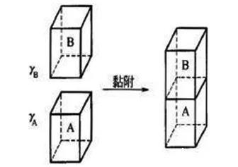 第一種方式,黏附方式。兩種不同的液體,液體A和液體B,互相相接觸后,兩者和氣體形成的表面同時消失,形成液體A和液體B之間的界面,也就是液液界面(AB)的過程,這就是黏附過程。該過程如圖2所示。