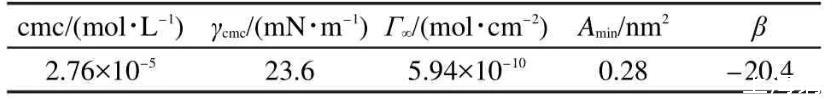 表140°C時(shí)烷基季銨鹽CTAB與AES復(fù)配體系(摩爾比為1:1)的表面性質(zhì)和特征參數(shù)β