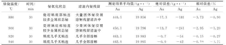 粗鉍是鉍精煉過程中的中間產物,粗鉍中含有鉛、銀、金、砷、銻、碲等[1],準確測定粗鉍中金、銀含量對于指導生產和回收貴金屬具有重要意義。高鉍物料中金、銀測定一般沿用火試金重量法[2-3],主要是控制試料中鉍的含量,減少鉍對火試金的影響,為了減少合粒中鉍的殘留,消除鉍圈對合粒影響,控制樣品中鉍含量為0.50 g為宜[4-6],對于粗鉍來說,稱樣量太小,不能準確測定樣品中金、銀含量。實驗證明可以先把鉍焙燒氧化,然后用乙酸除去鉍氧化物中的鉍[7-8],再用火試金重量法測定物料中金、銀含量[5]。本方法精密度高,準確度好,可用于粗鉍中金、銀含量的測定。