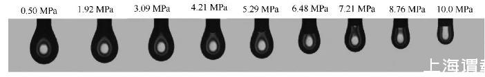 圖5 100℃時CO2-甲苯體系液滴形狀隨壓力的變化圖