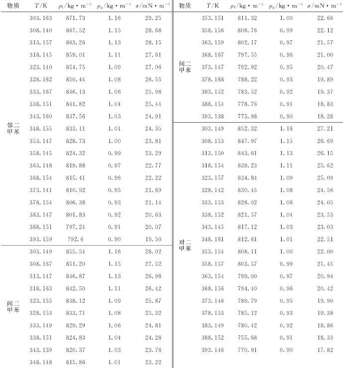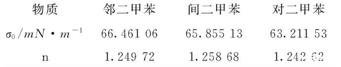 表4鄰二甲苯、間二甲苯和對二甲苯表面張力擬合參數