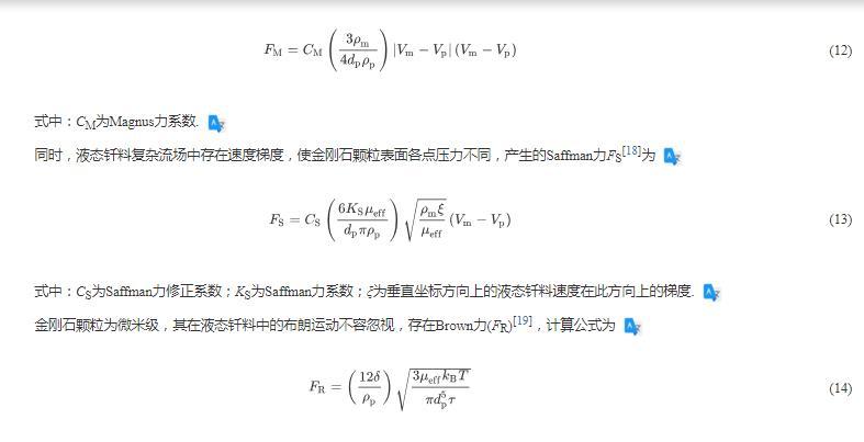 式中:Cm為附加質量力系數;Vp為金剛石顆粒的瞬時速度矢量。
