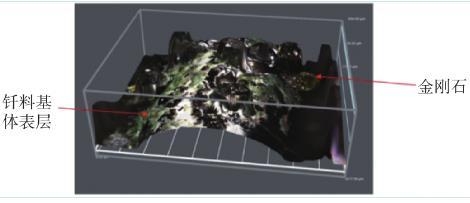 在激光釬涂過程中,金剛石散布于釬料中,釬涂后金剛石位于釬料表層,如圖5所示,可見經過激光熱源作用,金剛石顆粒遷移至釬涂層表面位置,并突出于釬涂層。為了明確金剛石在激光釬涂中的運動過程,深入分析了金剛石在激光釬涂過程中的運動行為。