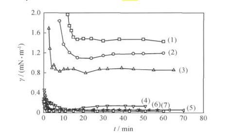 2.4酚胺樹脂聚醚破乳劑(PAPEmn)對(duì)不同原油體系油-水界面張力的作用