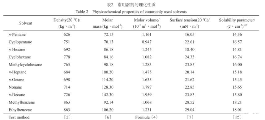 表2常用溶劑的理化性質