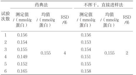 表2重復性試驗結果(n=6)