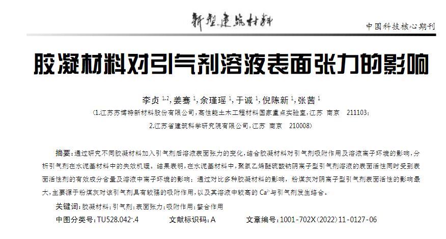 本文研究了混凝土中常用的膠凝材料組分(水泥、粉煤灰、礦粉、硅灰)對引氣劑引氣作用失效的影響機(jī)制,根據(jù)溶液表面張力的變化評價(jià)引氣劑在不同膠凝材料水泥基材料中的起泡性能。