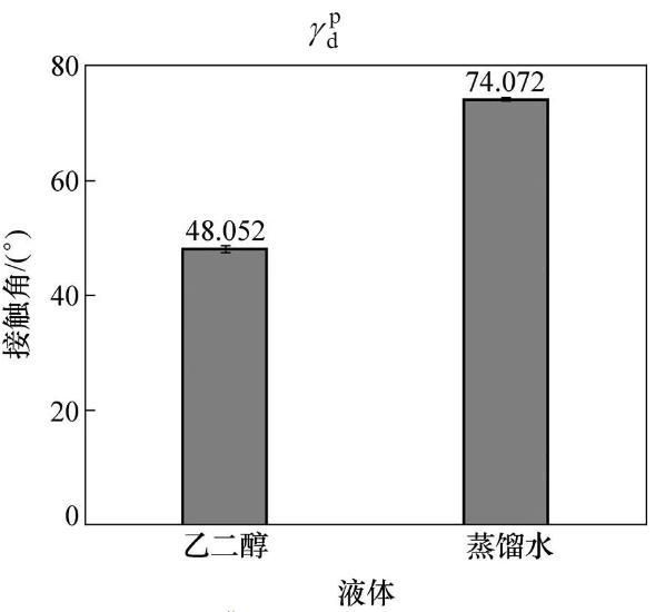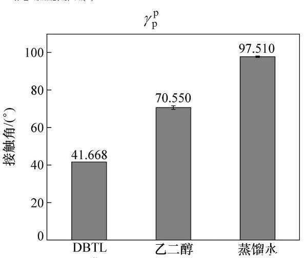 調和平均法計算CBT500與DBTL界面張力(12),CBT500、DBTL表面張力()、極性分量(p)、色散分量(d)研究是基礎。CBT500色散分量、極性分量通過引入2種測試液體求解二元二次方程組,DBTL色散分量、極性分量通過研究DBTL在PP薄板上靜態接觸角并結合表面張力是材料極性分量、色散分量之和進行二元二次方程組求解。