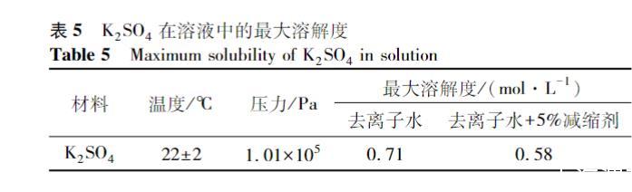 表5列出了K2SO4的最大溶解度。結果表明,SRA確實會降低K2SO4的最大溶解度。但是,對比圖5可以發現,漿體孔溶液中的K+和SO42-的濃度還遠遠未達到K2SO4的最大溶解度。因此,并不能依據SRA會降低K2SO4最大溶解度的結果判定這是B組溶液中SO42-濃度低的原因,還需要研究K2SO4在SRA中的溶解速度。