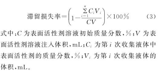 式中:C為表面活性劑溶液初始質量分數,%;V為表面活性劑溶液注入體積,mL;Ci為第i次收集液體中表面活性劑的質量分數,%;Vi為第i次收集液體的體積,mL。