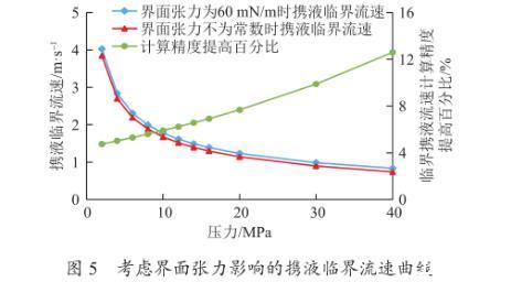 圖5考慮界面張力影響的攜液臨界流速曲線