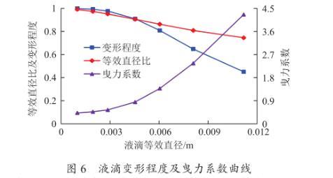 圖6液滴變形程度及曳力系數曲線