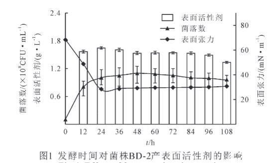 2.2發酵時間對菌株BD-2產表面活性劑的影響