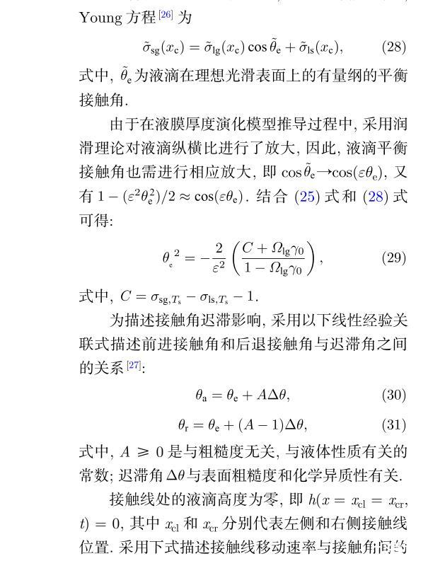 (27)式右側依次代表毛細力、重力、熱毛細力和蒸發在液滴運動過程中的作用.