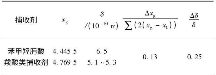 經計算,羧酸類捕收劑與苯甲羥肟酸的基團電負性和極性基斷面尺寸如表5所示。