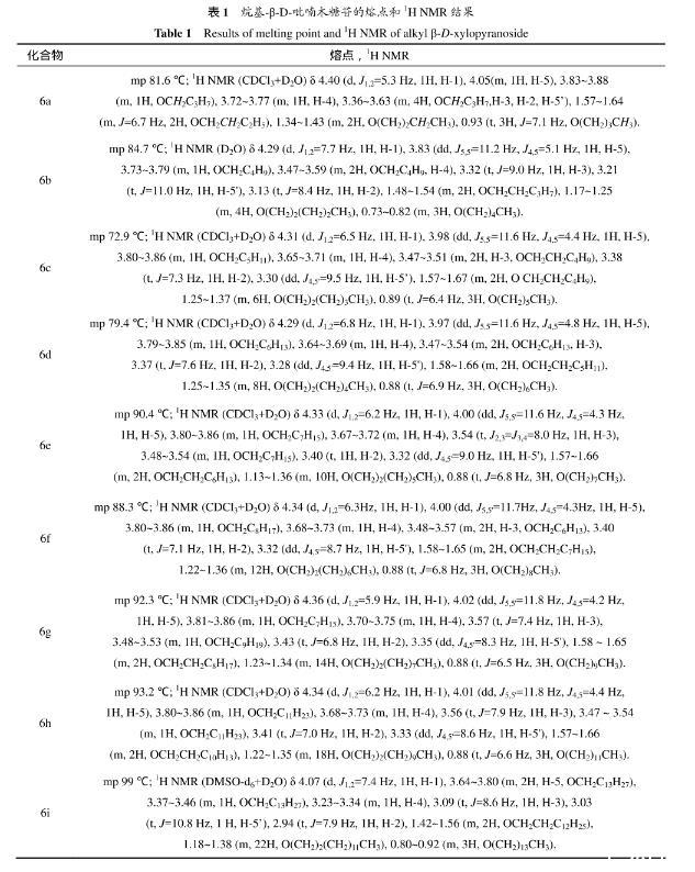 表1烷基-β-D-吡喃木糖苷的熔點和1H NMR結果