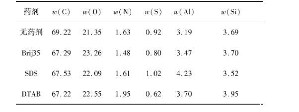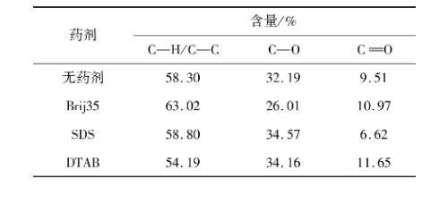 表4藥劑作用前后煤表面元素含量XPS寬掃結(jié)果