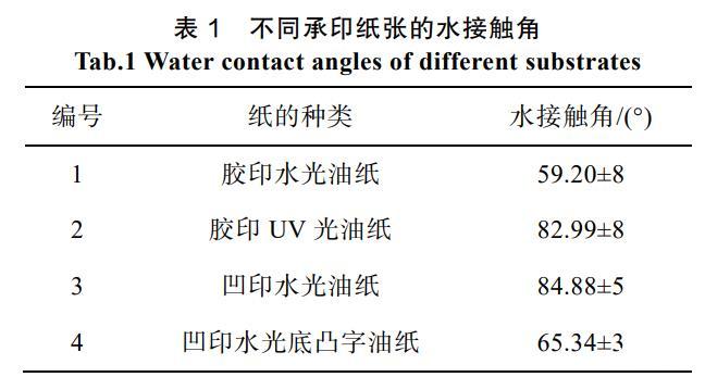 表1不同承印紙張的水接觸角