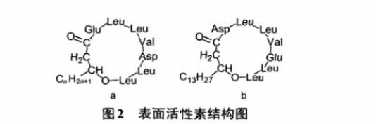 得到的脂肽先由氨基酸自動分析儀獲得脂肽的氨基酸組成,然后用電噴霧四極桿~飛行時間串聯質譜(ESI Q-TOF MS/MS)和氣相色譜/質譜連用(GC/MS)對脂肽結構進行解析。