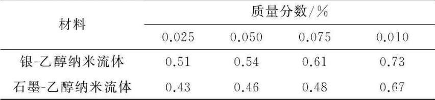 1)隨著質(zhì)量分?jǐn)?shù)增加到0.1%的過程中,納米流體表面張力下降了17%——25%,電導(dǎo)率卻升高了40%——60%.兩者的變化導(dǎo)致納米流體的τc/τH隨質(zhì)量分?jǐn)?shù)的升高呈現(xiàn)上升趨勢。