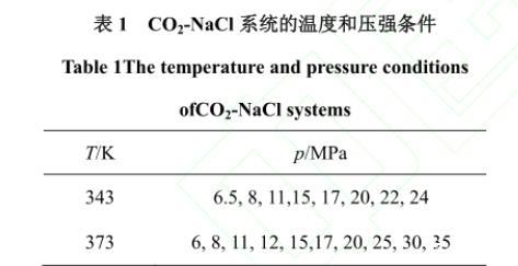表1 CO2-NaCl系統的溫度和壓強條件