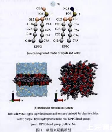 本文利用粗?;肿觿恿W模擬方法,考察表面張力強度為80×10?5N·cm?1條件下磷脂膜的破裂過程。通過建立磷脂膜破裂臨界時間和臨界表面張力值的分析方法,采用電中性的二棕櫚酰磷脂酰膽堿(dipalmitoyl phosphatidylcholine,DPPC)和帶負電的二棕櫚酰磷脂酰甘油(dipalmitoyl phosphoglycerol,DPPG)作為磷脂膜組分,考察表面張力施加速率以及磷脂膜組成對磷脂膜破裂行為的影響規律。進一步地,提出“動態”微觀對抗理論以描述磷脂膜破裂過程的動力學,旨在為磷脂膜和磷脂膜元件的設計及其應用提供理論指導。