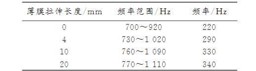 表3薄膜拉伸長度與吸聲系數>0.6對應的頻率范圍表
