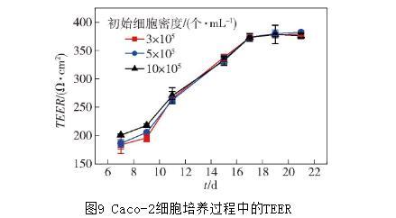 圖9 Caco-2細胞培養過程中的TEER