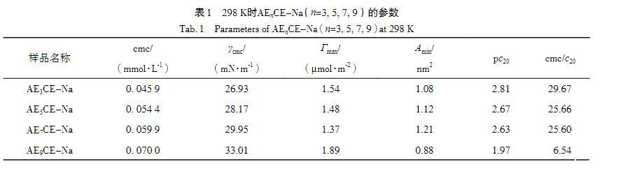 表1 298 K時AEnCE-Na(n=3,5,7,9)的參數