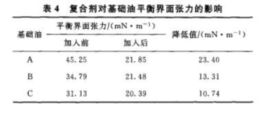 復(fù)合劑對(duì)不同基礎(chǔ)油界面張力的影響差異