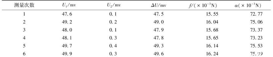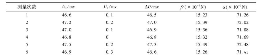 表3改進后金屬吊環測量液體的表面張力系數數據表(水溫25℃)