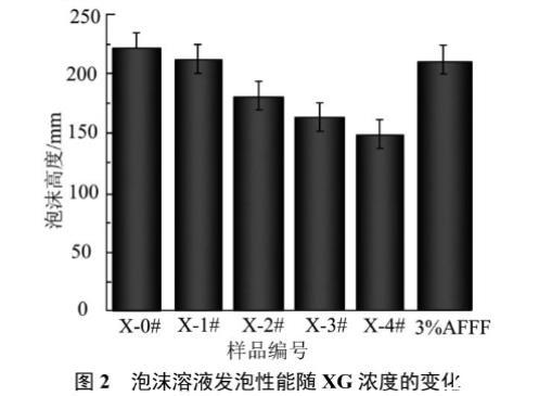 圖2泡沫溶液發泡性能隨XG濃度的變化
