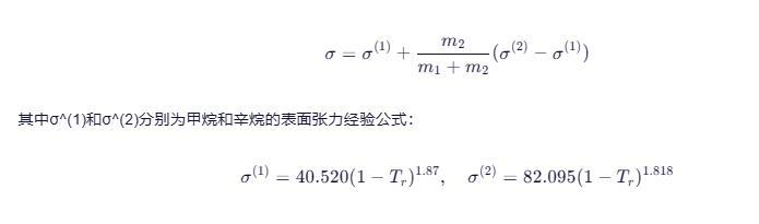 其中σ^(1)和σ^(2)分別為甲烷和辛烷的表面張力經(jīng)驗(yàn)公式: