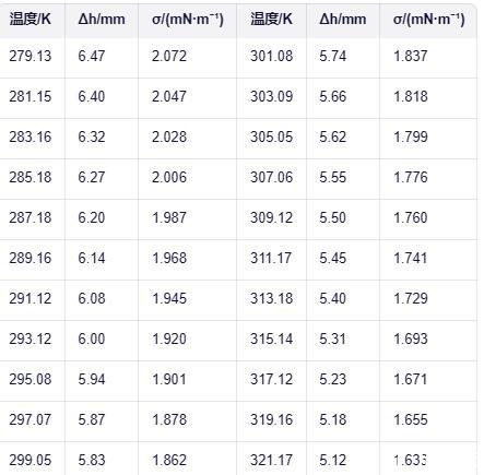 表面張力儀系統(tǒng)測(cè)定:溫度范圍內(nèi)甲基九氟丁醚的液相密度與表面張力