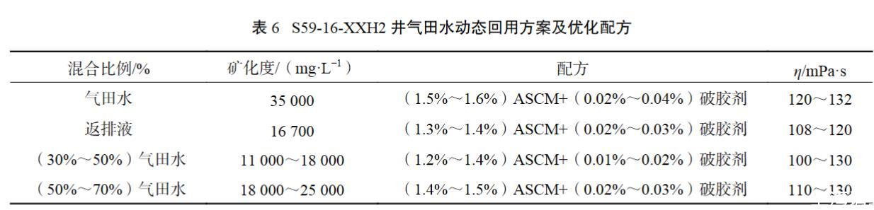 表6 S59-16-XXH2井氣田水動態回用方案及優化配方