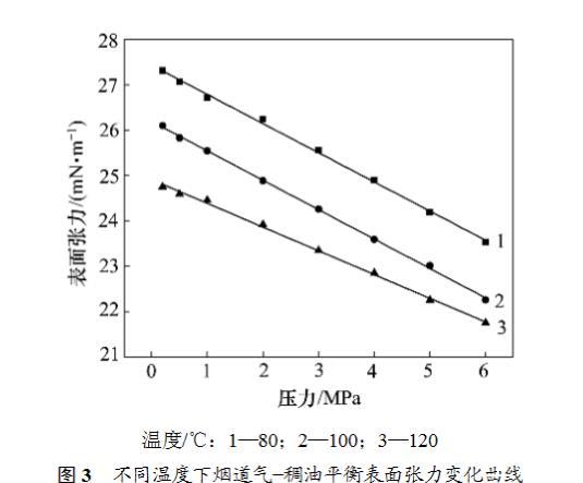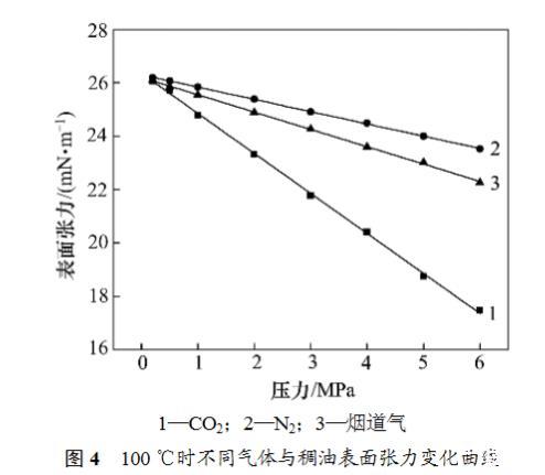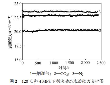 6)在一定的壓力和溫度條件下,每個煙道氣-稠油系統的表面張力測定重復3次,以保證較好的重復性。