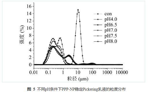 2.5 pH對PPP-NP穩(wěn)定Pickering乳液粒徑分布的影響