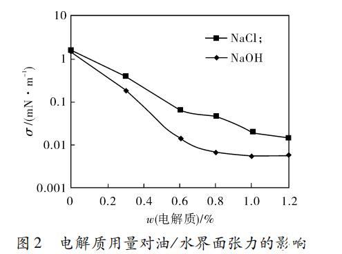 圖2 電解質(zhì)用量對油/水界面張力的影響