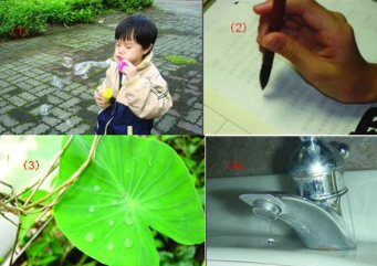 細(xì)心觀察蓮花、芋頭葉及甘藍(lán)菜的葉面,我們發(fā)現(xiàn)水珠可以在這些葉面上自由的滾動(dòng)。自來(lái)水筆的墨水不會(huì)因地心引力而滴出、毛筆上的墨汁不會(huì)掉下來(lái)。水滴在水龍頭下會(huì)慢慢形成一個(gè)球狀的液滴再滴下來(lái),肥皂泡泡吹出來(lái)不會(huì)破。這些現(xiàn)象都是和表面張力有關(guān)。水珠能在荷葉上自由的滾動(dòng),這是因?yàn)樗谌~面上的接觸角介于130~160度之間,接觸角大顯示出水珠不易潤(rùn)濕表面。而自來(lái)水筆的墨水不會(huì)滴出來(lái)以及毛筆的墨汁不會(huì)掉下來(lái)是因?yàn)橐后w的毛細(xì)管現(xiàn)象。因?yàn)槊?xì)管的水與管壁的接觸角小于90度,表示水與管壁的附著力較水分子間的內(nèi)聚力大,由于附著力與表面張力的相互作用,一垂直毛細(xì)管端的液滴會(huì)被吸住,并和重力達(dá)到平衡,這就是自來(lái)水筆的墨水不會(huì)因地心引力而滴出的原因。而便宜的原子筆往往因表面張力的控制不良而不順暢或油墨溢出。毛筆上的墨汁不會(huì)掉下來(lái)也是毛細(xì)現(xiàn)象的關(guān)系。