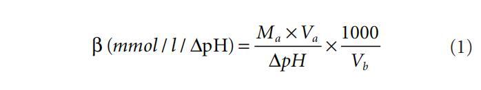 式中,Ma是酸的摩爾濃度,Va是酸的體積(單位:毫升),Vb是緩沖液的體積(單位:毫升),ΔpH是pH單位的變化。