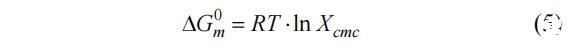 膠束化的標(biāo)準(zhǔn)熵(0dsm)是根據(jù)膠束化的標(biāo)準(zhǔn)吉布斯自由能的溫度依賴性,使用關(guān)系式(6)[30,31]計算得出的: