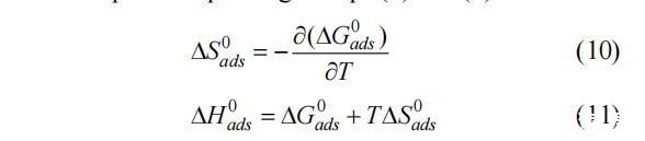 使用公式(9)[33]評估標(biāo)準(zhǔn)吉布斯吸附能D Ga0 ds: