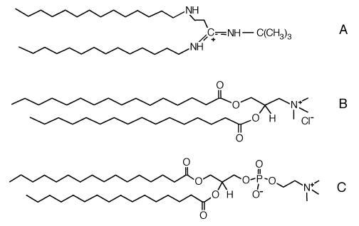 圖1.(A)雙14酰胺的分子結構;(B)DPTAP;和(C)DPPC。