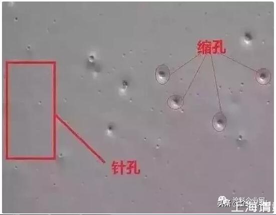 5、涂裝后在溶劑揮發到初期成膜階段,由于溶劑揮發過快,或在較高氣溫下施工,特別是受高溫烘烤,涂膜本身來不及補足空擋,形成一系列小穴,即針孔。