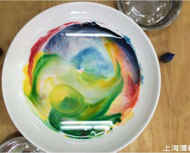 在牛奶表面上放幾滴食用色素。顏色,數量和布置可以根據您的喜好選擇。