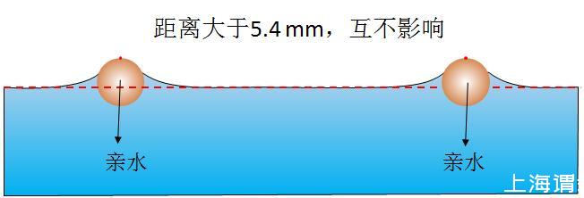 圖2當親水球體距離很大時,每個表面張力的合理都向下,互不影響