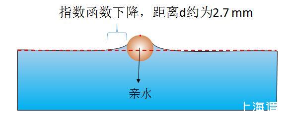 圖1親水物體使周圍水面升高,影響范圍約為2.7mm,此時液體表面張力垂直向下